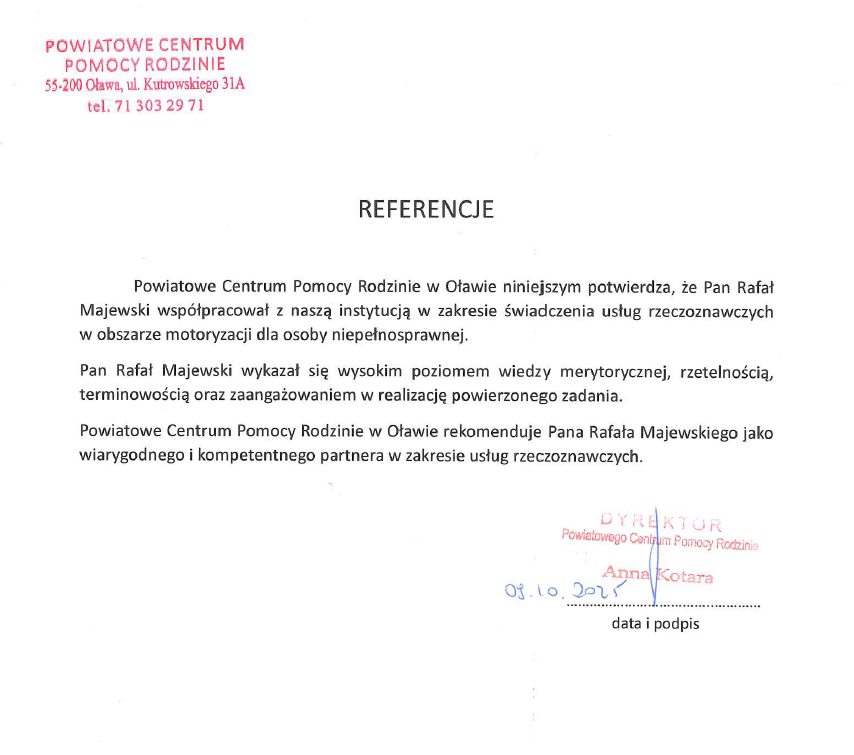 Jestem członkiem Ogólnopolskiego Stowarzyszenia Rzeczoznawców Motoryzacyjnych, Ruchu Drogowego, Maszyn i Urządzeń.